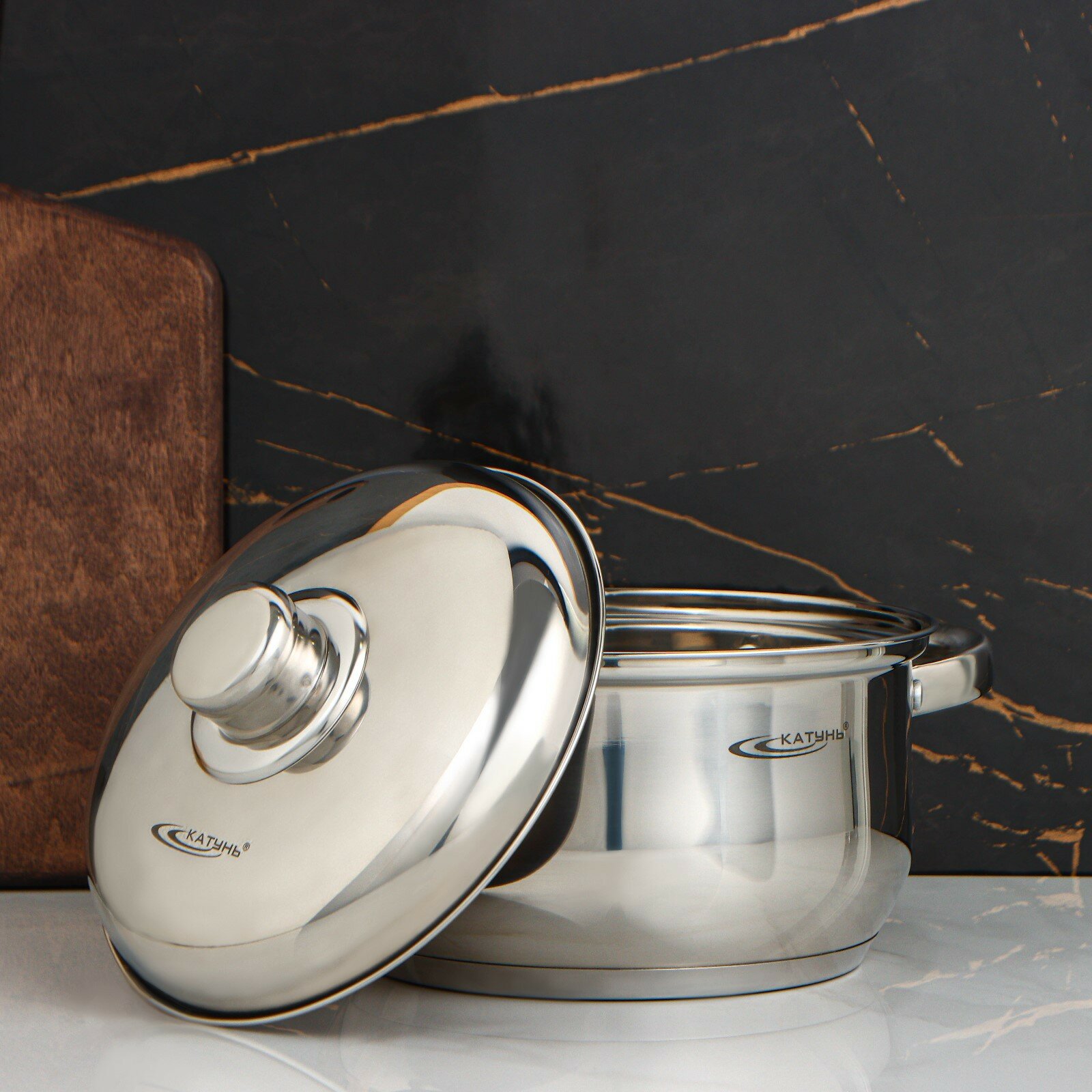 Кастрюля 7,3 л катунь, гретта, КТ04-D-72, нерж. сталь, зеркальная полировка
