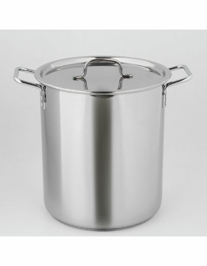 Купить Кастрюля нержавеющая индукционная 20л d-30 h-33 общепит ТРС высокая капсульное дно с металлической крышкой