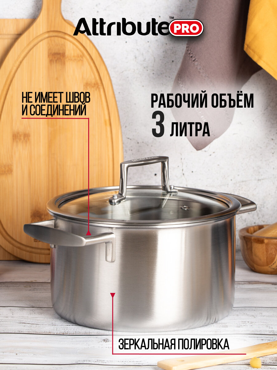 кастрюля ATTRIBUTE PRO Chef`s Select 3,3л 22см нержавеющая сталь, индукция