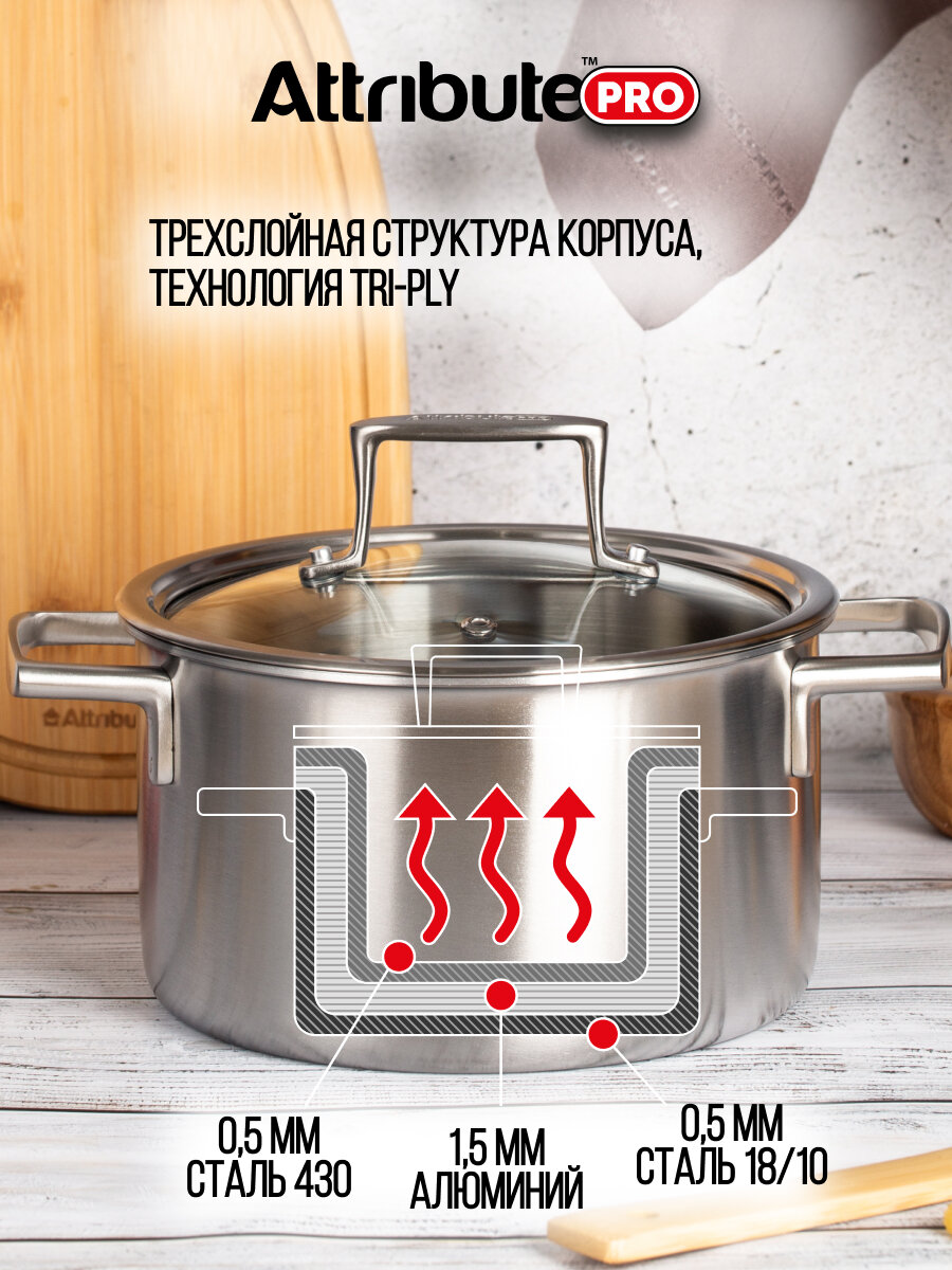 Кастрюля ATTRIBUTE PRO Chef`s Select 5,8л 26см нержавеющая сталь, индукция