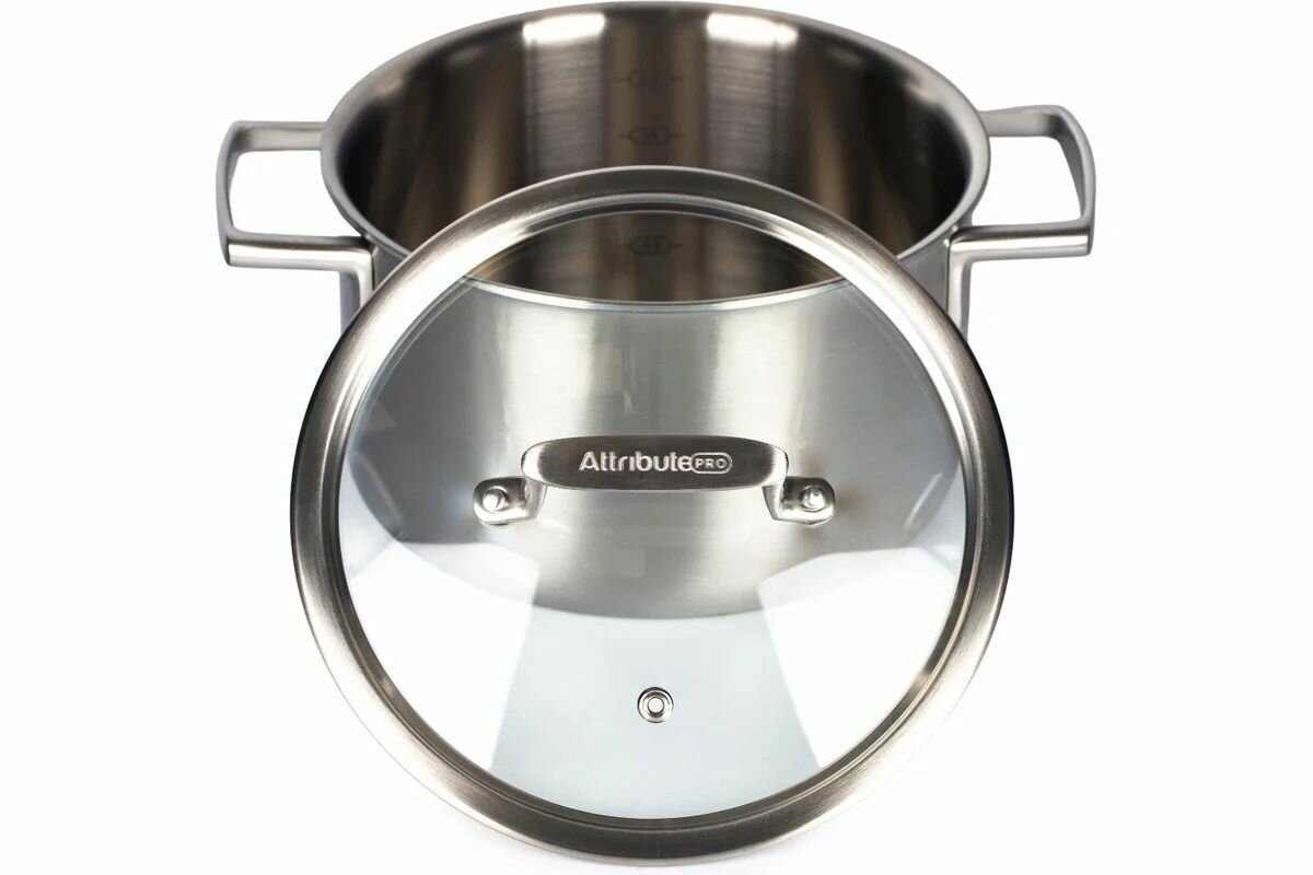 Кастрюля из нержавеющей стали Attribute Pro Chef`s Select 5,8 л со стеклянной крышкой