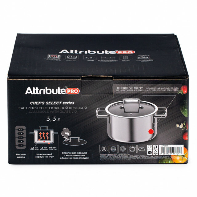 Кастрюля Attribute с крышкой CHEF`s SELECT 3.3л (APS330)