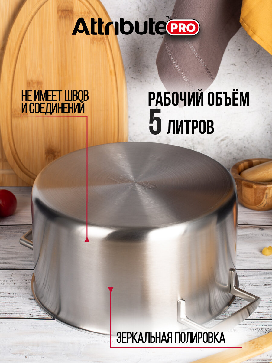 Кастрюля ATTRIBUTE PRO Chef`s Select 5,8л 26см нержавеющая сталь, индукция