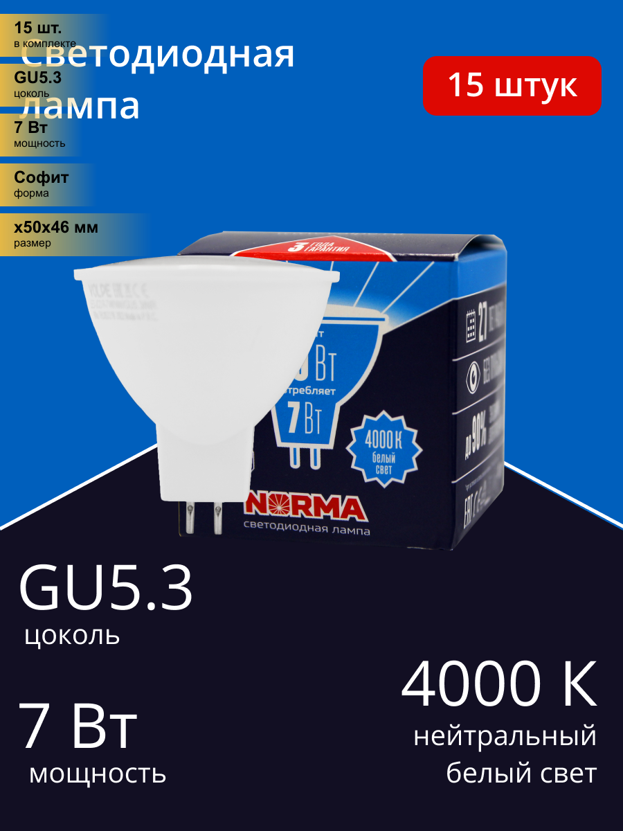 Сохранить(15 шт.) Светодиодная лампочка Volpe NORMA MR16 GU5.3 220V 7W(600lm) 4000K 4K матовая 50x46 LED-JCDR-7W/NW/GU5.3/NR . Цоколь GU5.3 интересное: