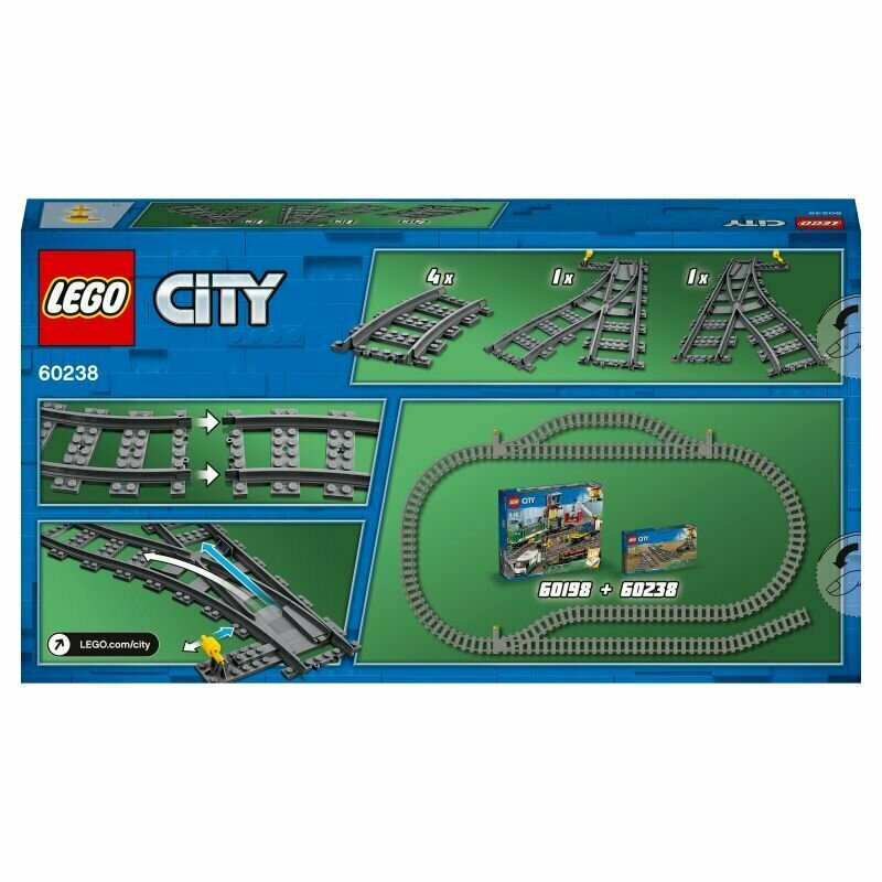 | Дополнительная информация | Конструктор City 60238 Железнодорожные стрелки совместим с наборами 60205 - Рельсы, 60197 - Пассажирский поезд, 60198 - Товарный поезд |