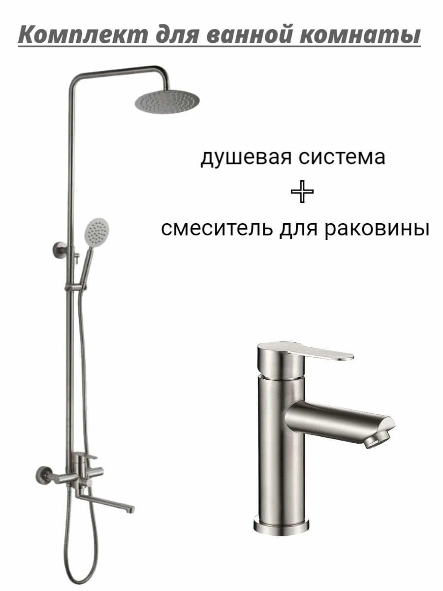 Душевая система с тропическим душем и смеситель для раковины HB24803-2-HB10803-2, , нержавеющая сталь