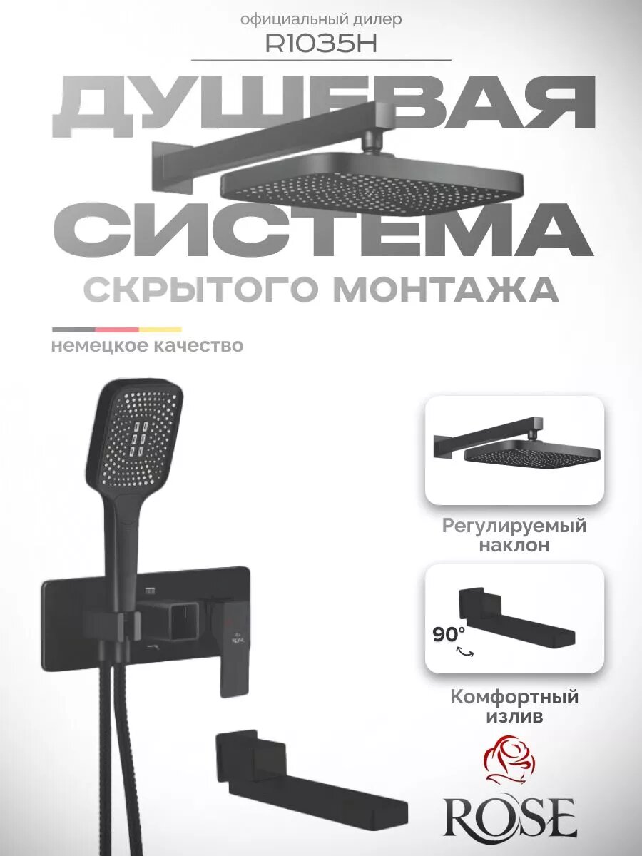 Ниже Вы можете прочитать отзывы на Душевая система встраиваемая Rose R1035H, черный, ознакомится с подробными характеристиками, посмотреть интересные обзоры и фотографии на Душевая система встраиваемая Rose R1035H, черный.