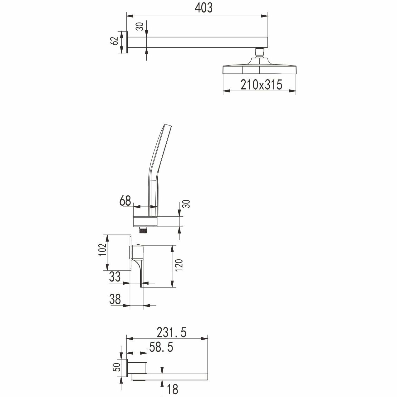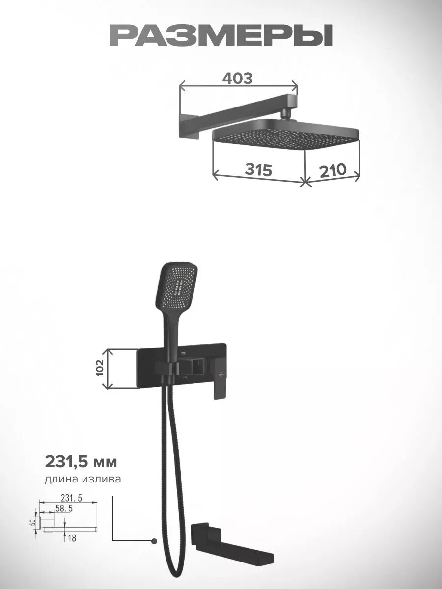 | Форма верхнего душа | квадратная |