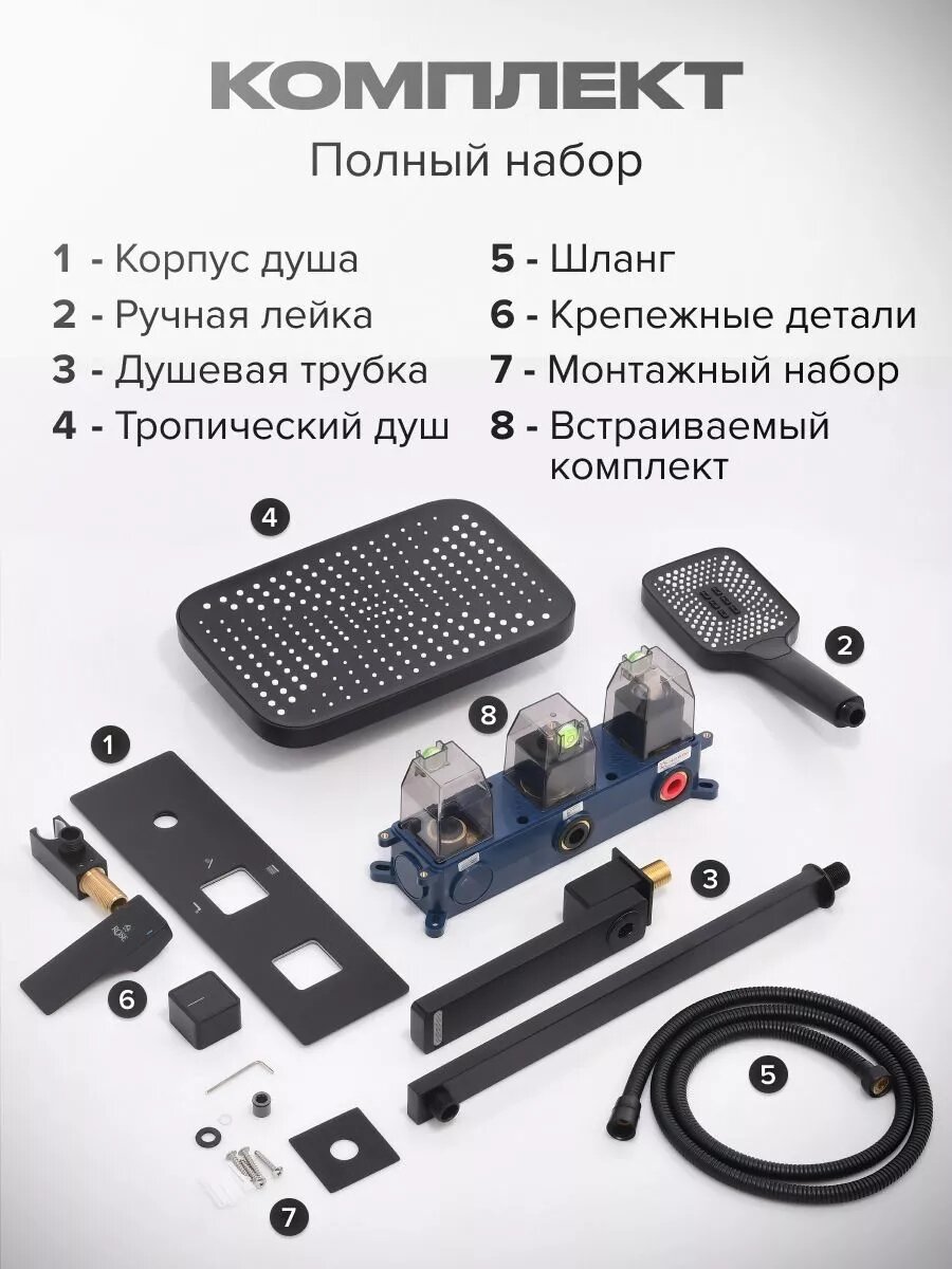 СохранитьДушевая система встраиваемая Rose R1035H, черный интересное: