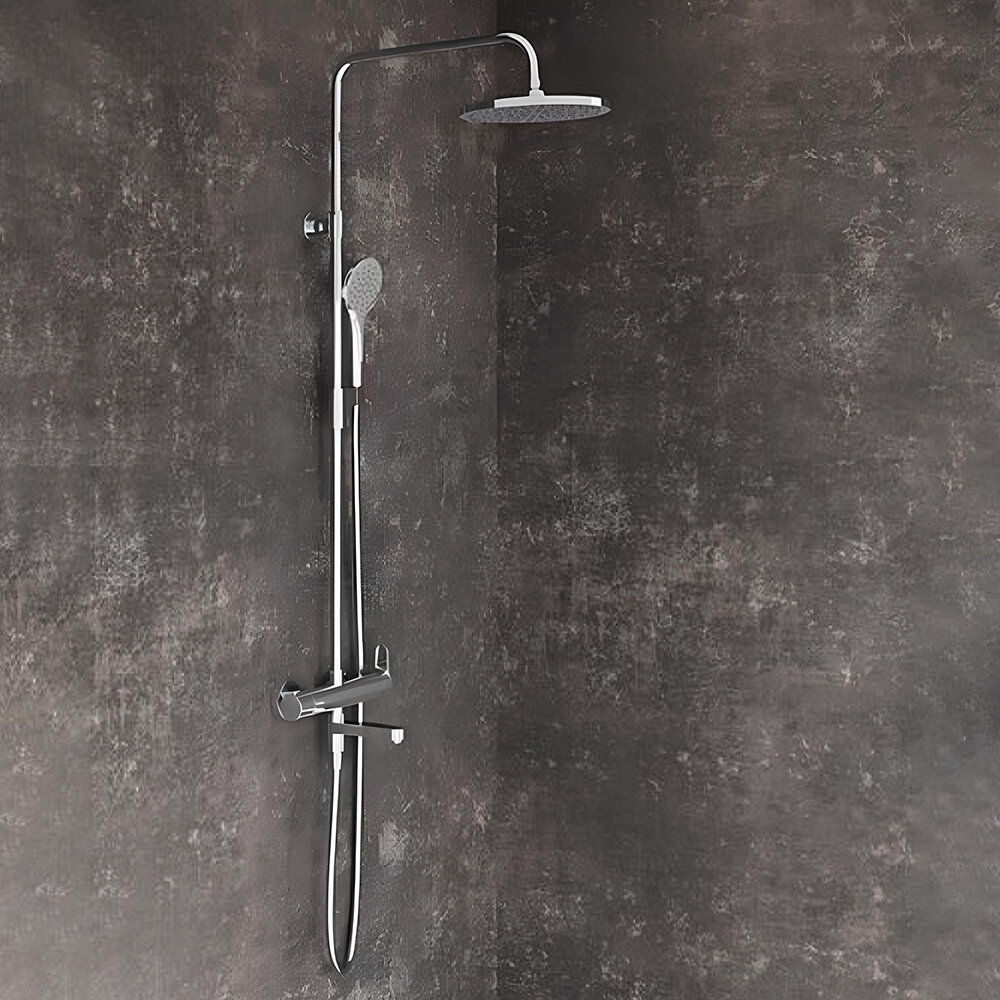 Душевая стойка, верхний душ 25 см, со смесителем для ванны, поворотный излив RAVAK, хром. X07P642