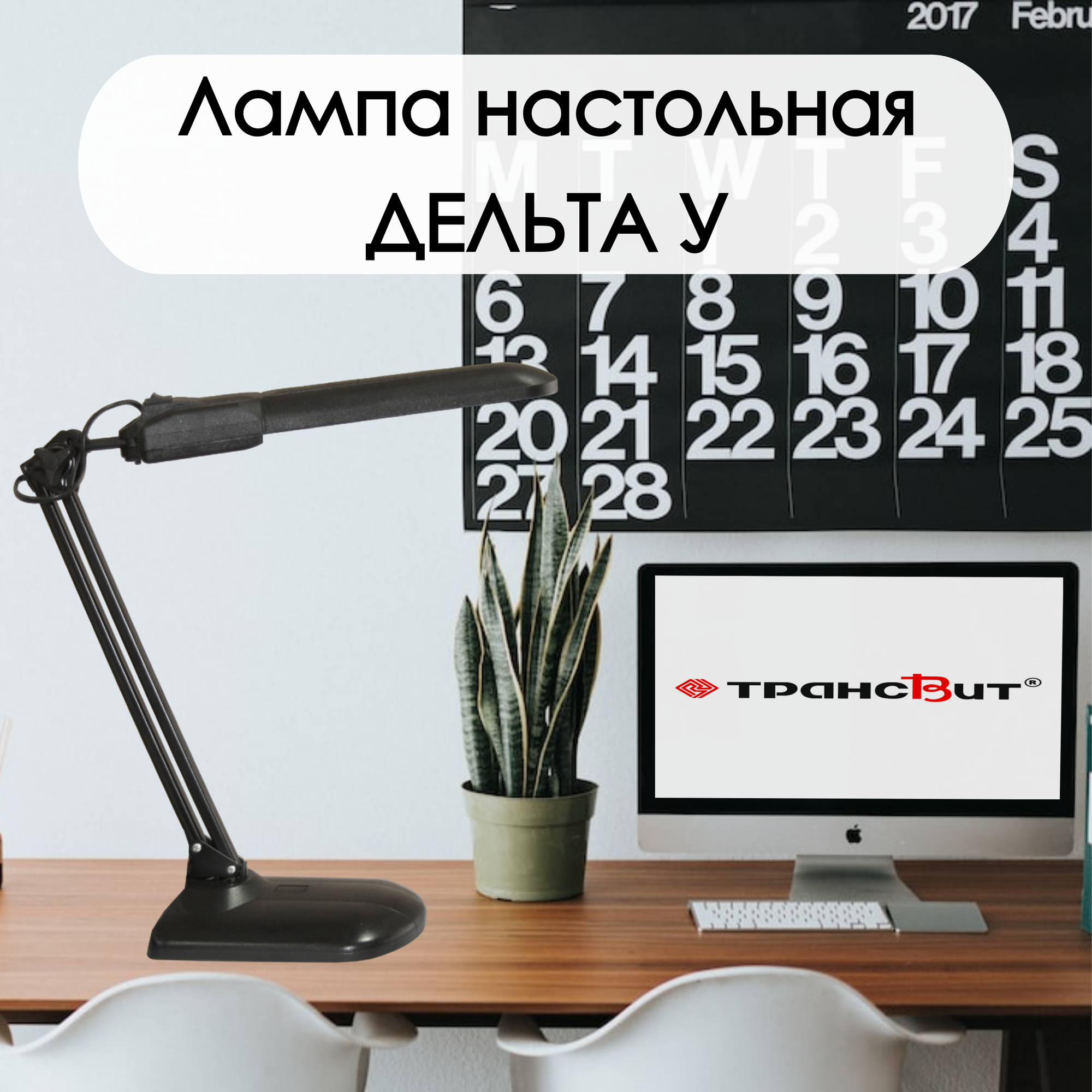 Светильник настольный на подставке Трансвит «Дельта-У», люминесцентный, черный