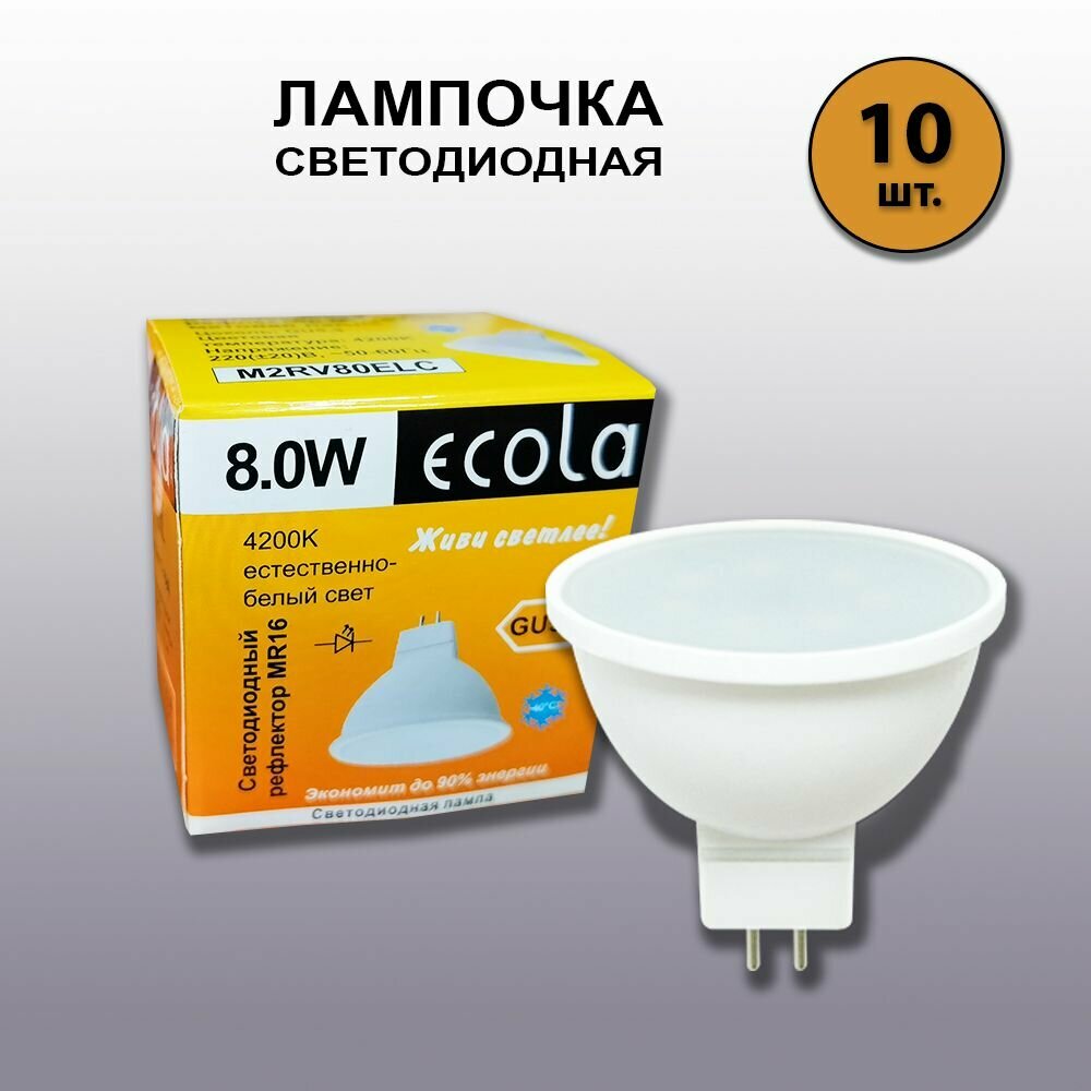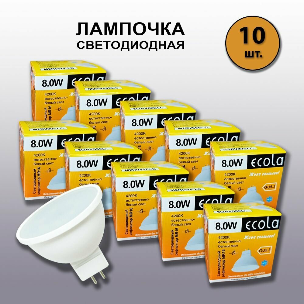 10 шт. Лампа Экола MR16 GU5.3, Ecola LED 8W, 4200K естественно-белый свет, матовая MR16GU