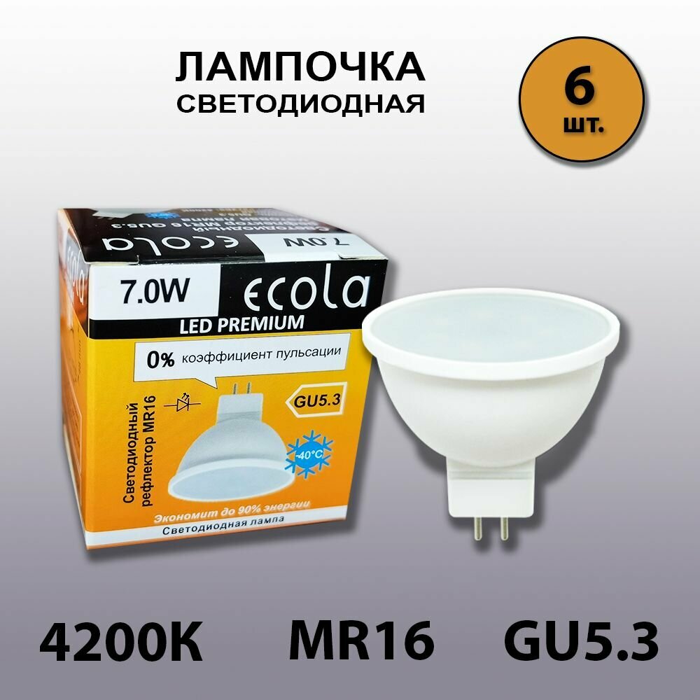 Купить Лампочка светодиодная MR16, 7W, 4200k, Ecola Premium, 6 штук
