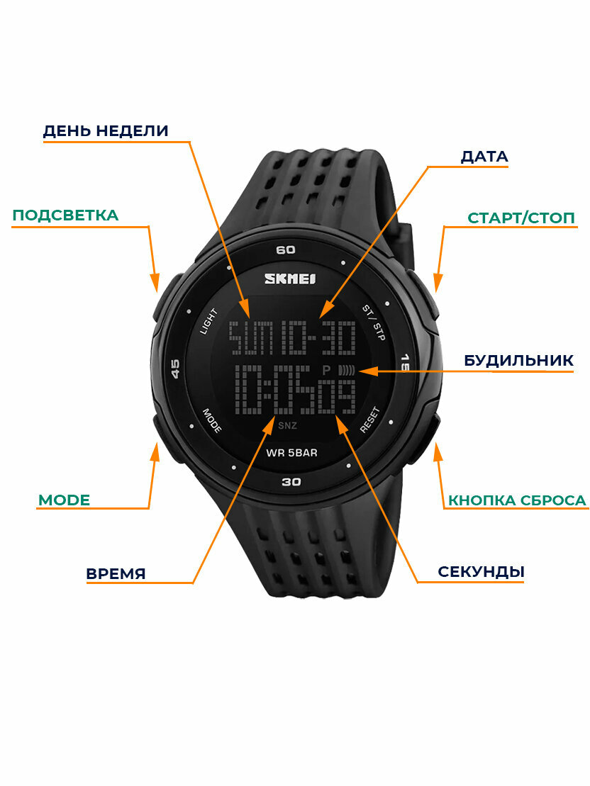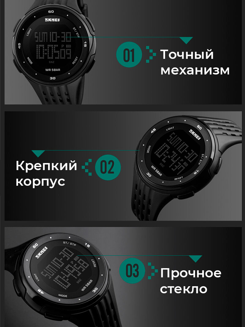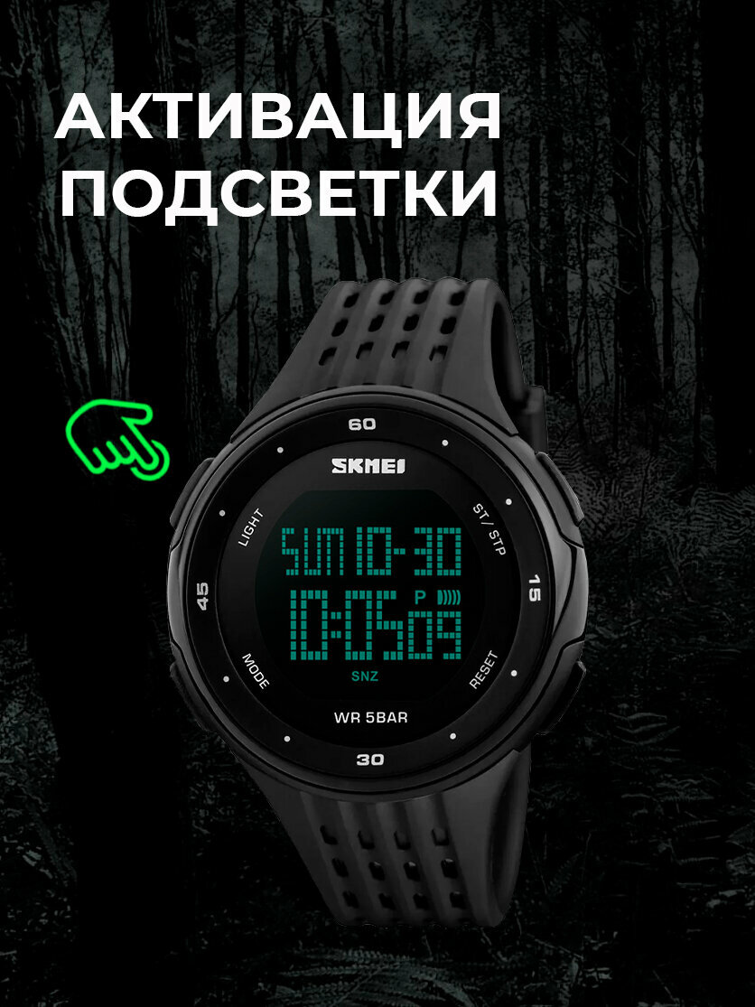 Часы наручные электронные спортивные SKMEI кварцевые, с будильником и подсветкой, круглые, черные интересное: