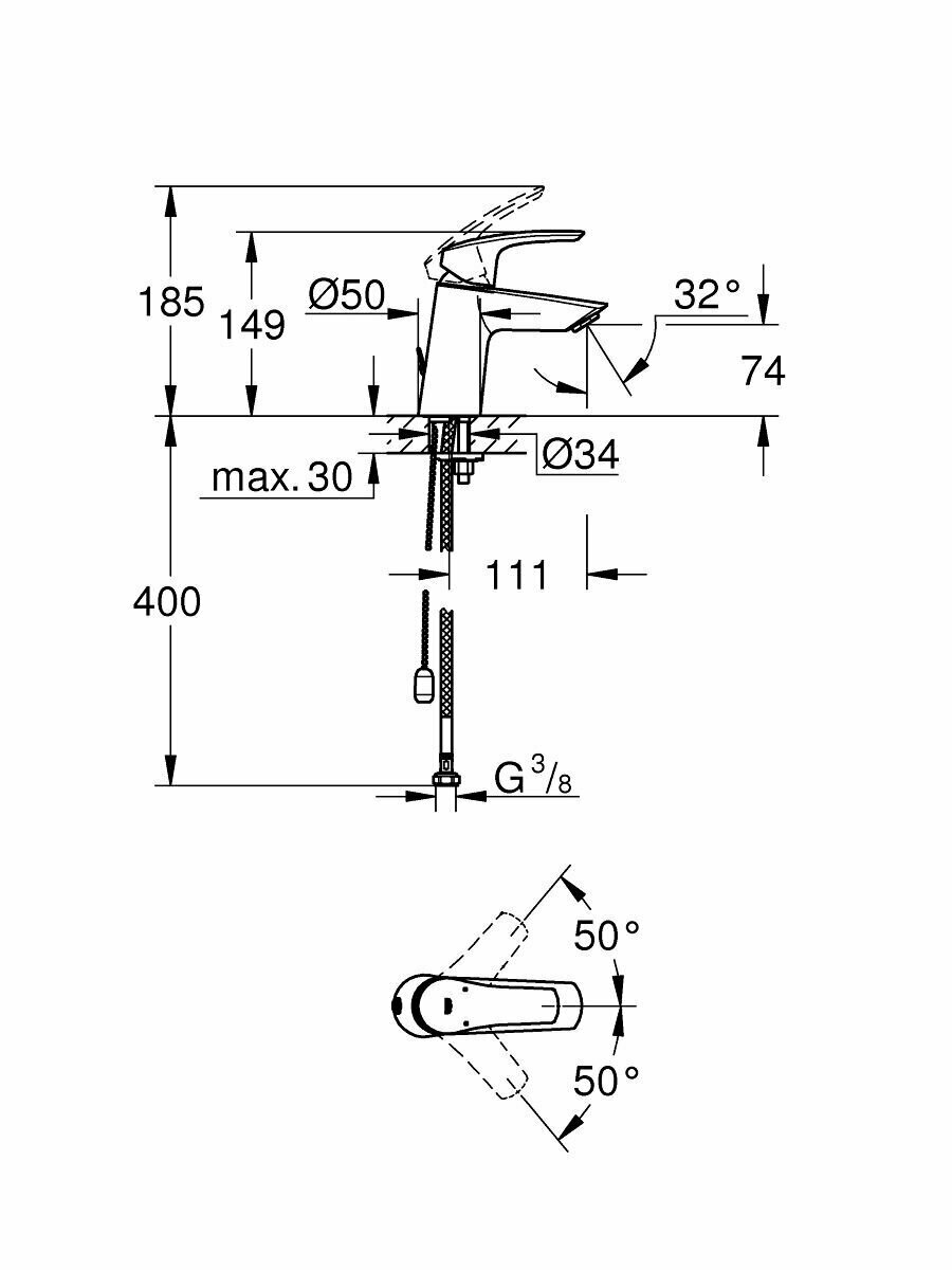 Смеситель для раковины с цепочкой Grohe Eurosmart 23966003