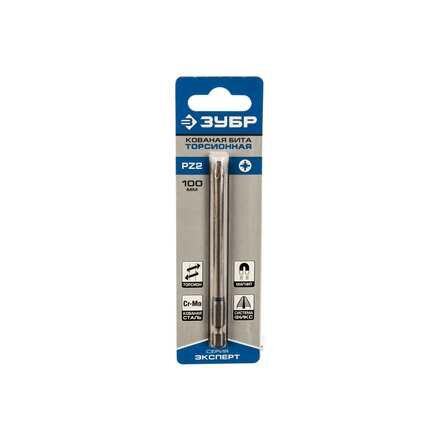 Бита ЗУБР эксперт торсионная кованая, обточенная, хромомолибденовая сталь, тип хвостовика E 1/4, PZ2, 100мм, 1шт