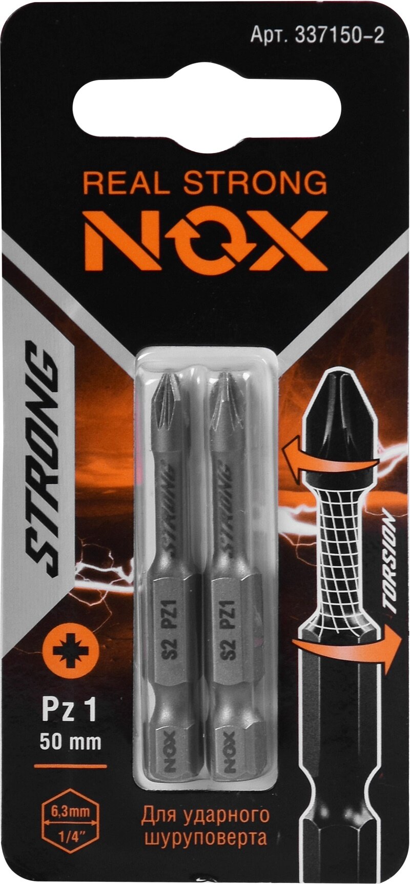 | Дополнительная информация | Набор бит Nox, Strong torsion, Pz1, 50 мм, 2 шт |