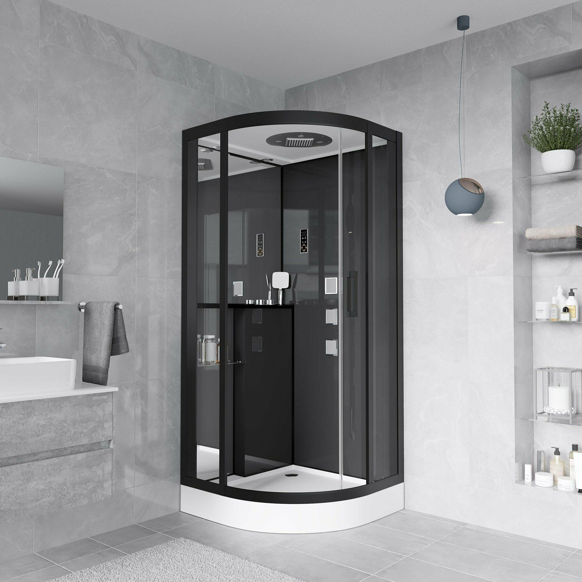 Купить Душевая кабина Grossman GR-241 100x100 профиль Черный стекло прозрачное