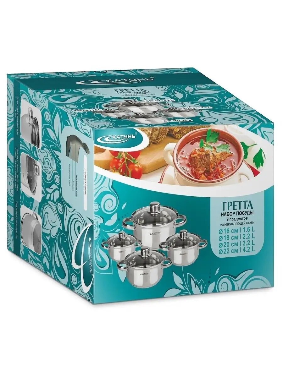 Набор кастрюль Катунь Гретта КТ04-C, 8пр. (1,6л+2,2л+3,2л+4,2л) в подарупак