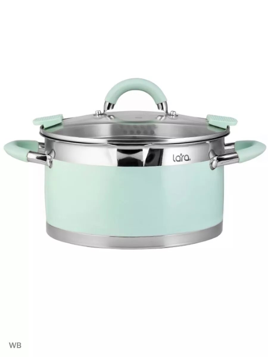 Кастрюля LARA MINT LR02-541, 2,4л, 18x10 см, индукц. дно, крышка-дуршлаг