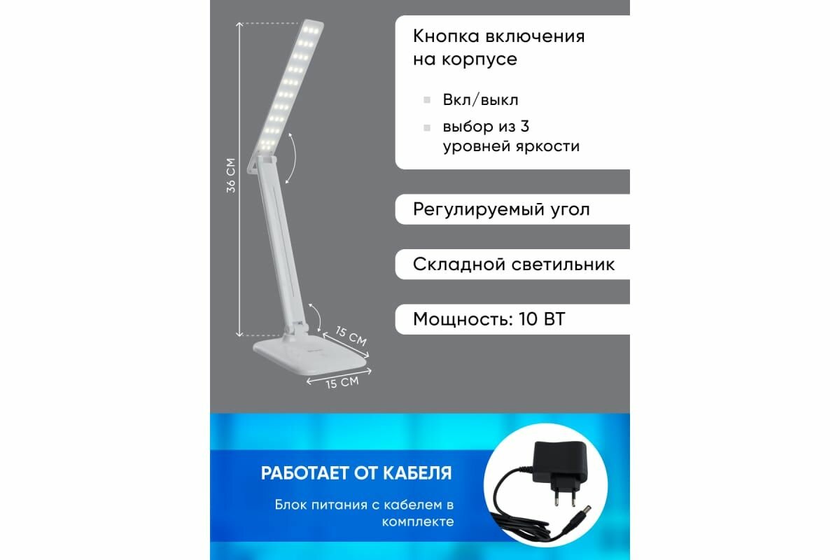 Светильник настольный складной 10W, 4000K, 100-240V, белый, DE1725