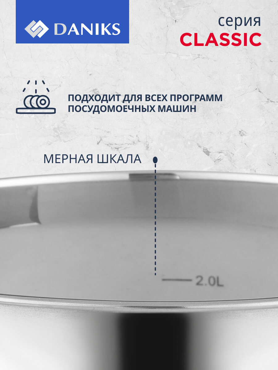 Кастрюля нерж, 1.9 л, с крыш, Daniks, Классика, SD-16, индукц