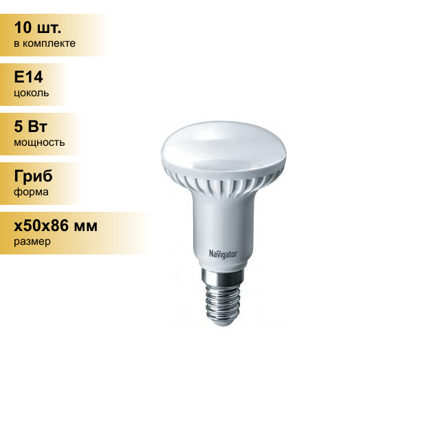 10шт/уп. Лампа LED Гриб 5Вт 230B R50 E14 375Лм 2700К Свет Теплый белый арт. 94259 NLL-R50-5-230-2.7K-E14 Navigator, уп. 10шт