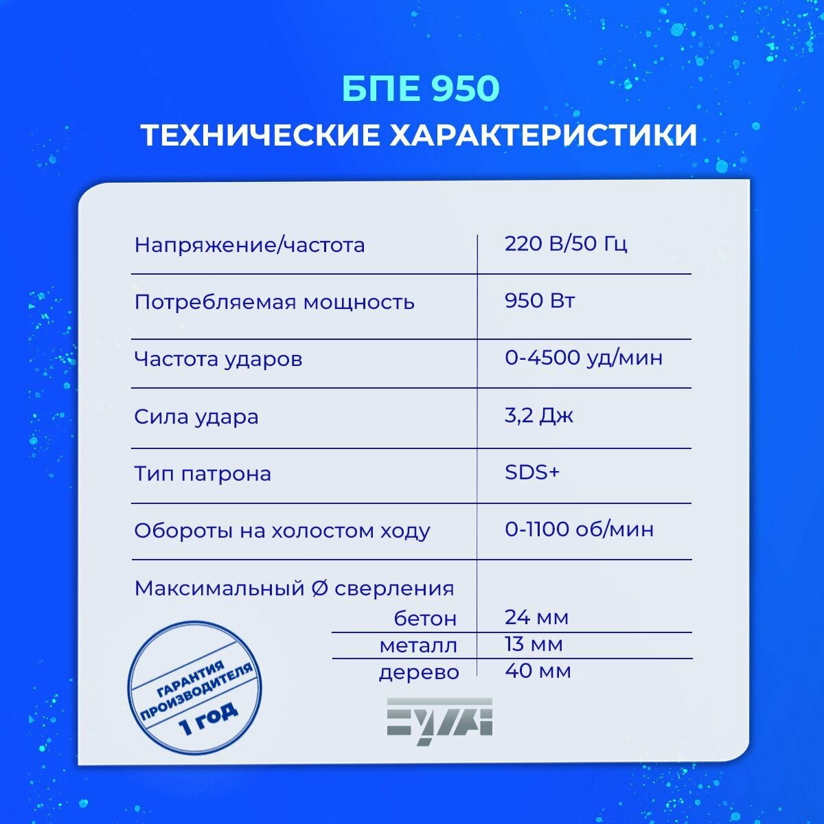 Перфоратор Булат БПЕ 950 (950Вт, SDS+ 3,2Дж, 0-4500уд/мин, 0-1100об/мин)