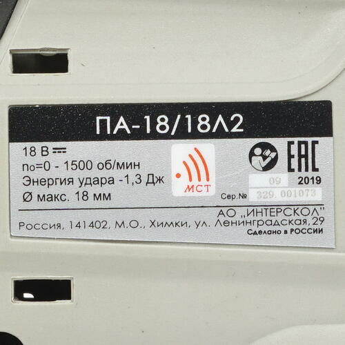 Аккумуляторный перфоратор ИНТЕРСКОЛ ПА-18/18Л2 329.0.0.74
