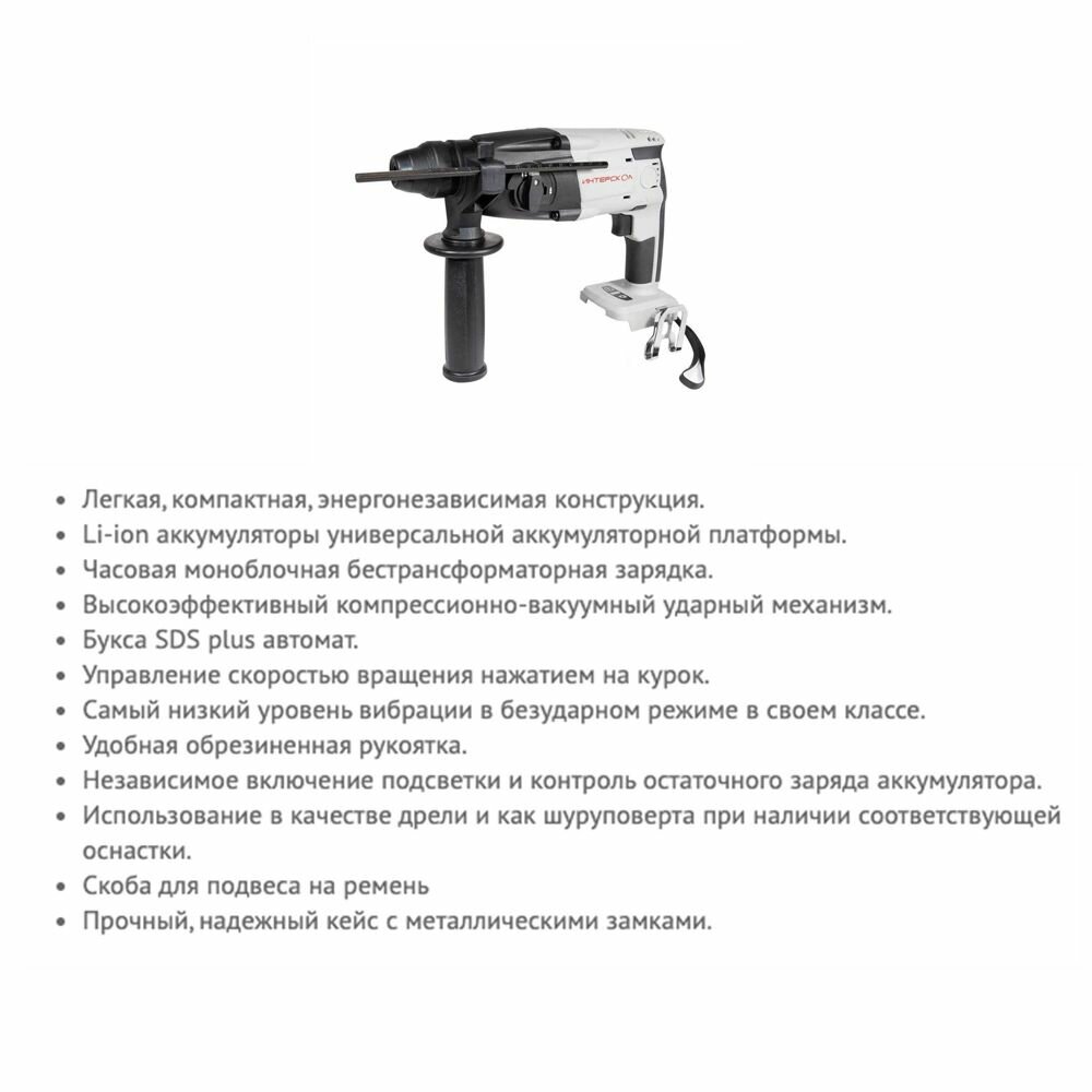 Перфоратор ИНТЕРСКОЛ ПА-18/18Л2 329.0.0.74,от аккумулятора, кейс, АПИ, без АКБ и ЗУ
