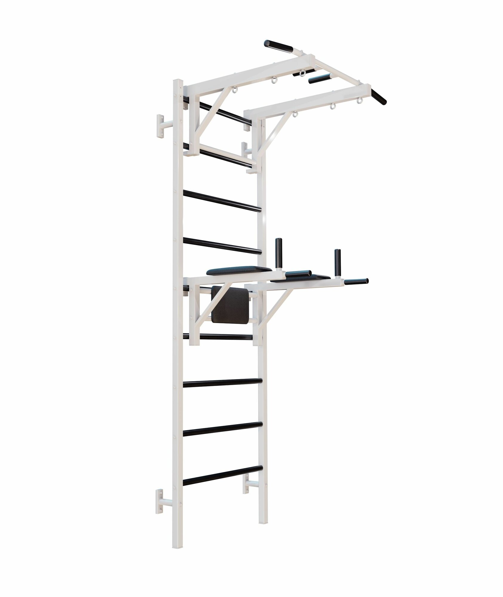 Шведская стенка металлическая Проф 240x71x16 см + Детский спортивный комплекс - Турник + Брусья Пресс Белый