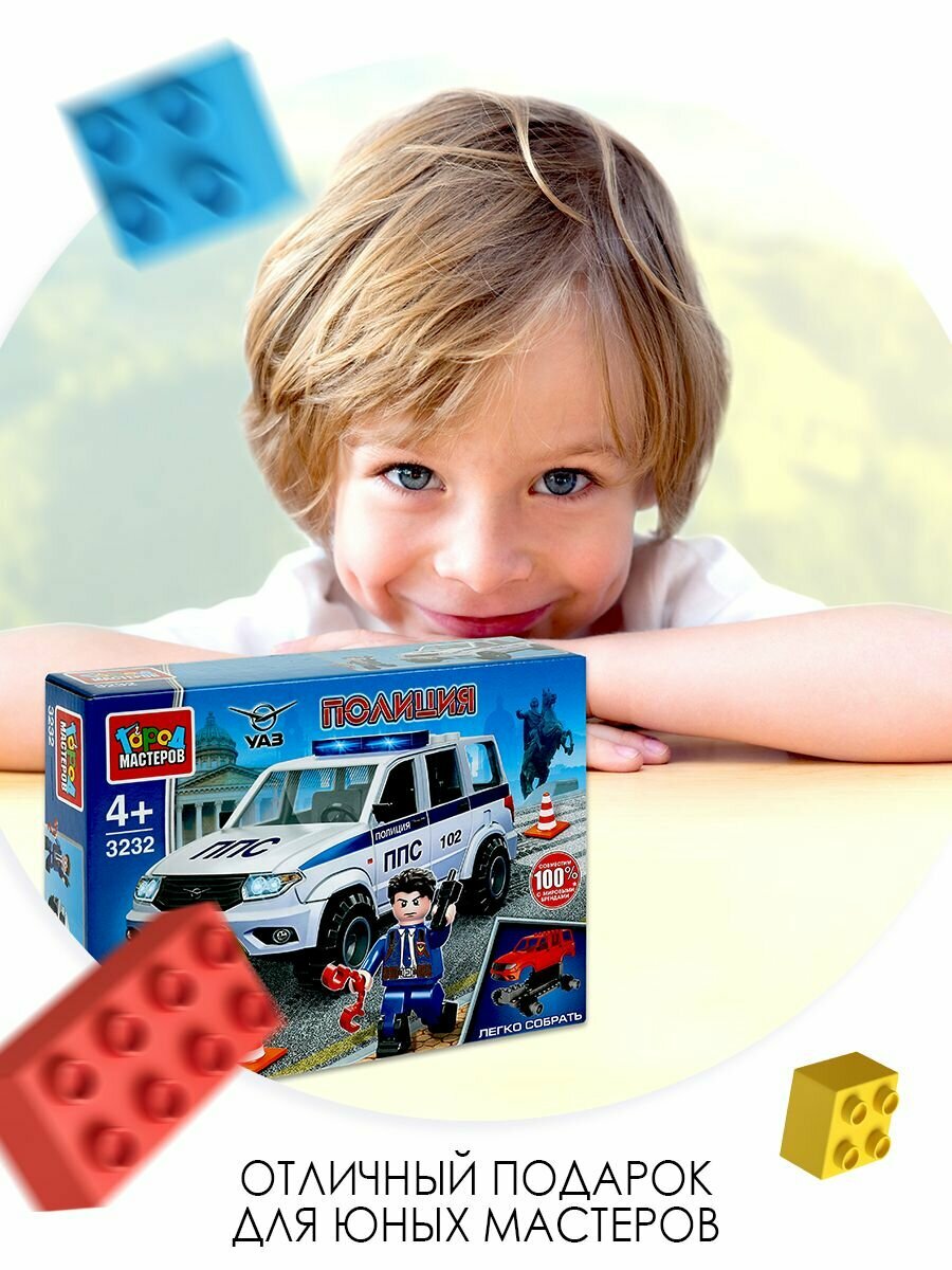 Купить Конструктор для мальчиков машина УАЗ патриот Полиция 44 детали Город Мастеров