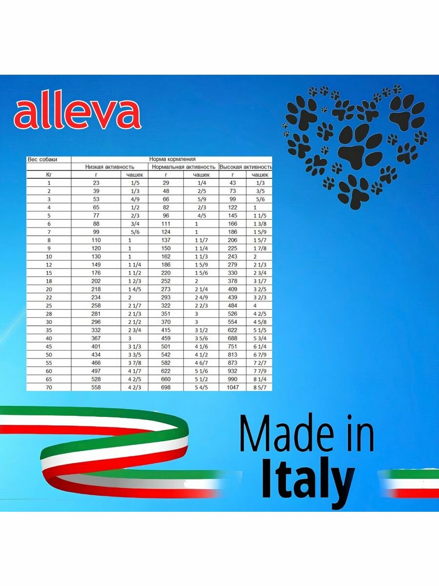 | Дозировка | Нормы кормления указаны в таблице на упаковке. При переводе на корм Alleva Equilibrium рекомендуется постепенно в течение 1-2 недель замещать предыдущий корм на новый. |