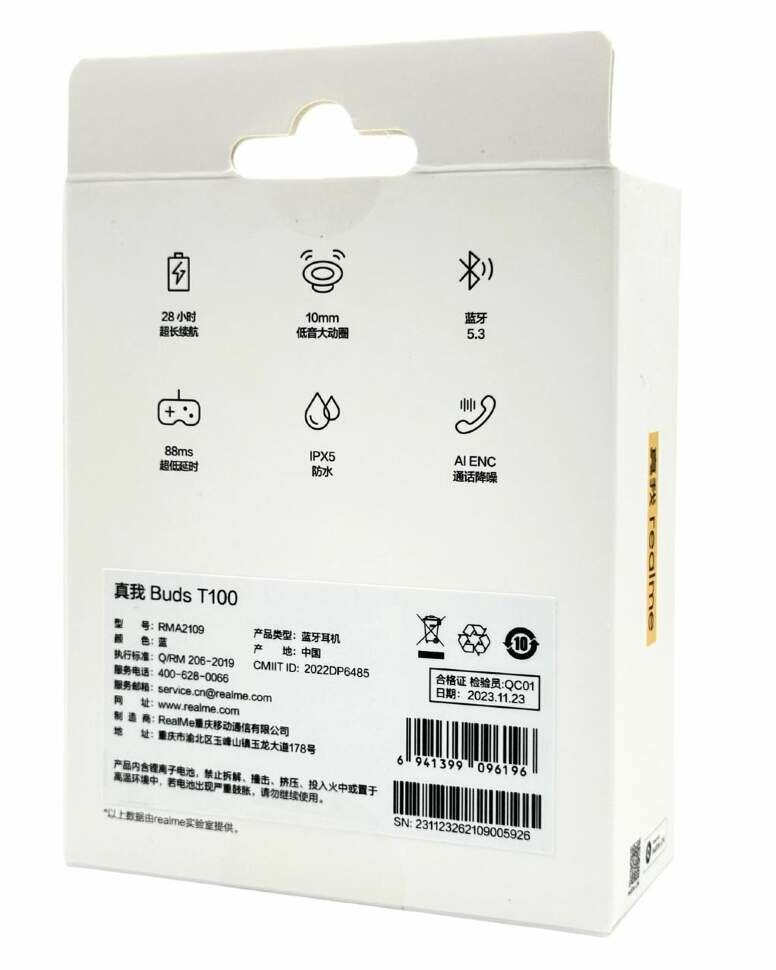 Беспроводные наушники realme Buds T100, синий (CN версия)