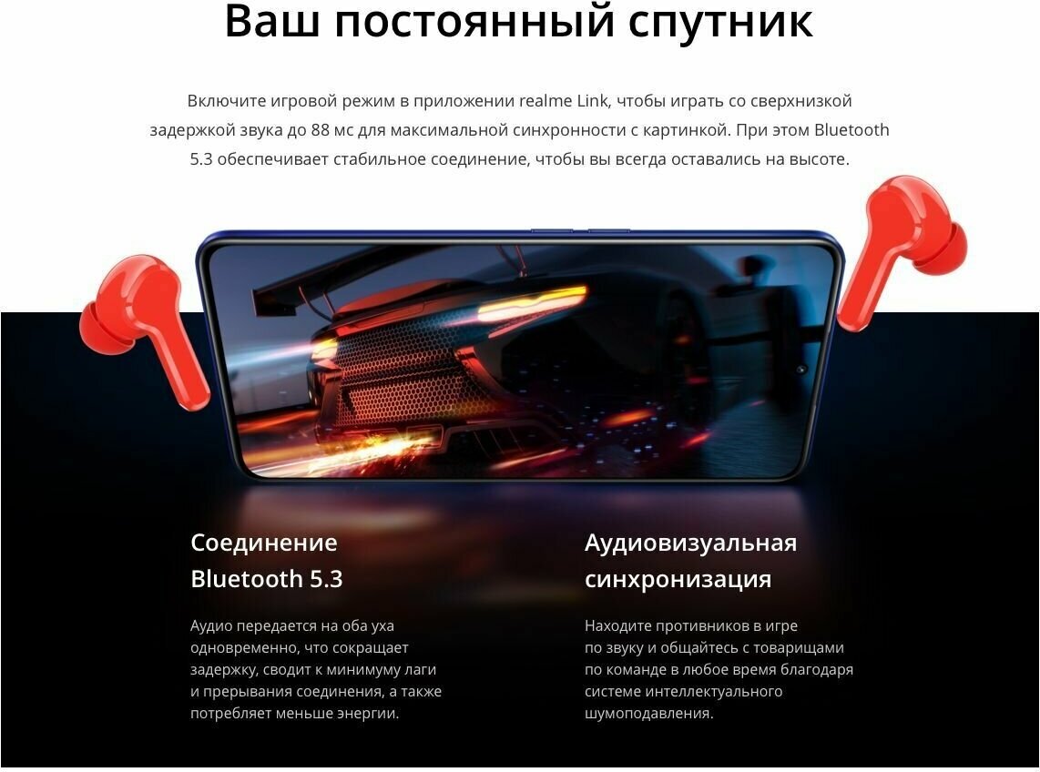 Беспроводные наушники realme Buds T100 черный, ANC, шумоподавление