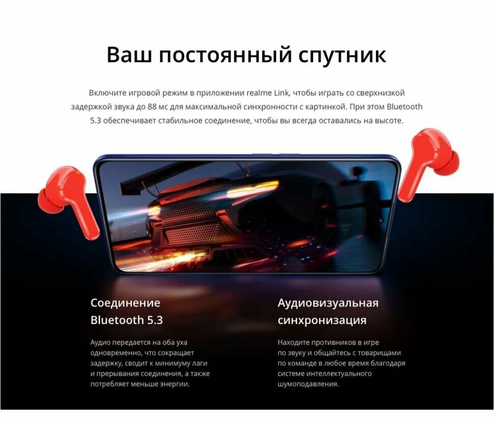 Беспроводные наушники RealMe Buds T100 True Wireless 5.3 Bluetooth 88MS Blue с низкой задержкой, черные