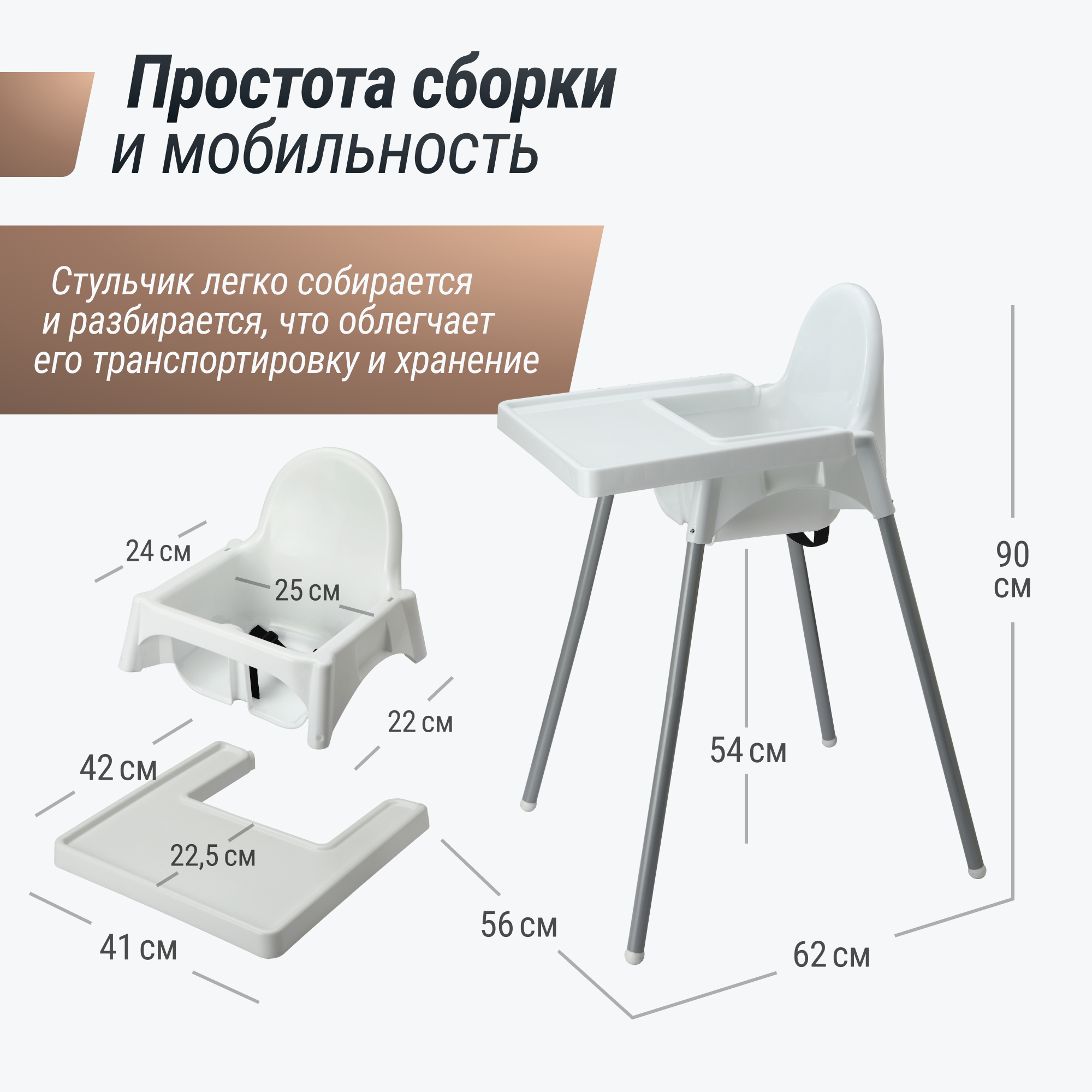 СохранитьСтульчик для кормления UNIX Kids Fixed White - аналог икеа, для ребенка, съемный столик, ремень безопасности, цвет белый интересное:
