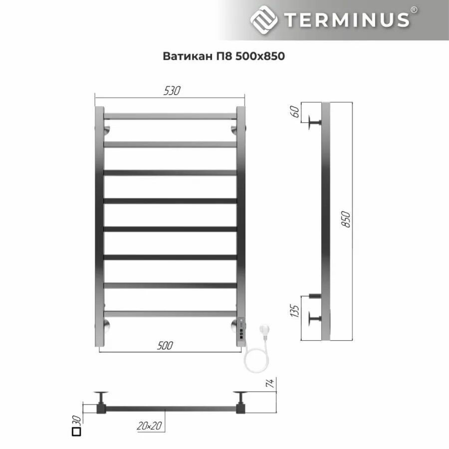 Купить Полотенцесушитель Электрический Terminus Ватикан П8 530мм 850мм форма Лесенка, универсальное подключение (правое/левое)