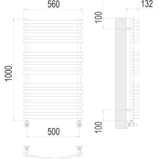 Полотенцесушитель водяной TERMINUS (Терминус) Ватикан П10 500х1000 мм, нижнее подключение, сверхпрочная пищевая нержавеющая сталь, технология защиты от электрокоррозии