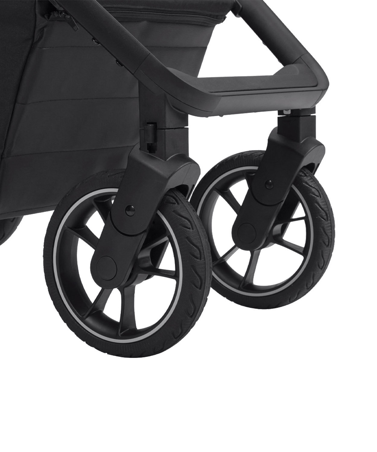Большой размер колёс для летней коляски, на дутиках, катится шикарно и лучная амортизация. 1 раз потребовалась подкачка за сезон после покупки. |