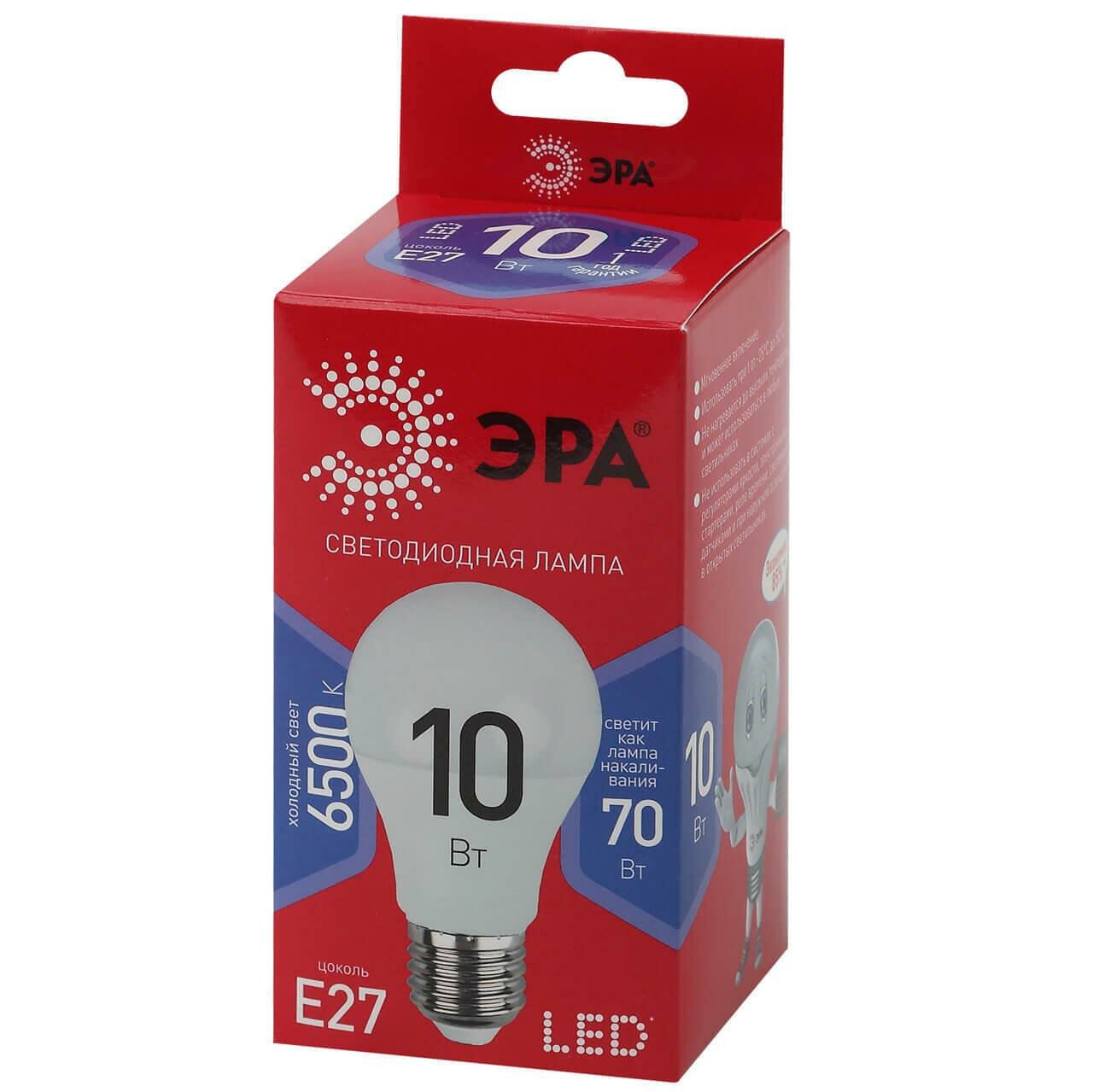 Лампа светодиодная ЭРА Б0045324, E27, A60, 10 Вт, 6500 К