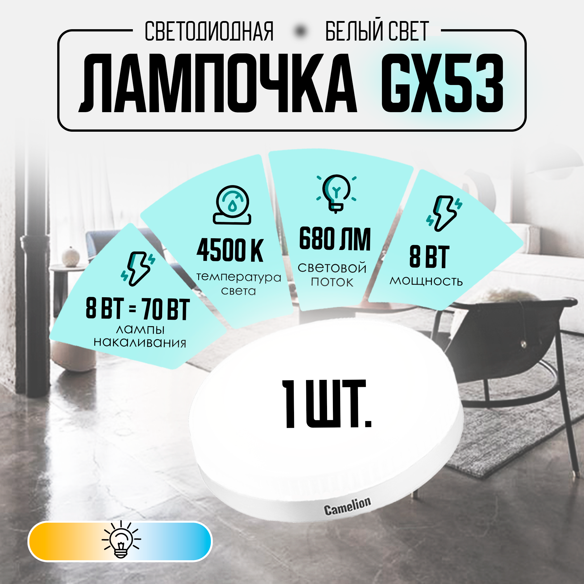 (Эл.лампа светодиодная 8Вт 220В), CAMELION LED8-GX53/845/GX53 (1 шт.)