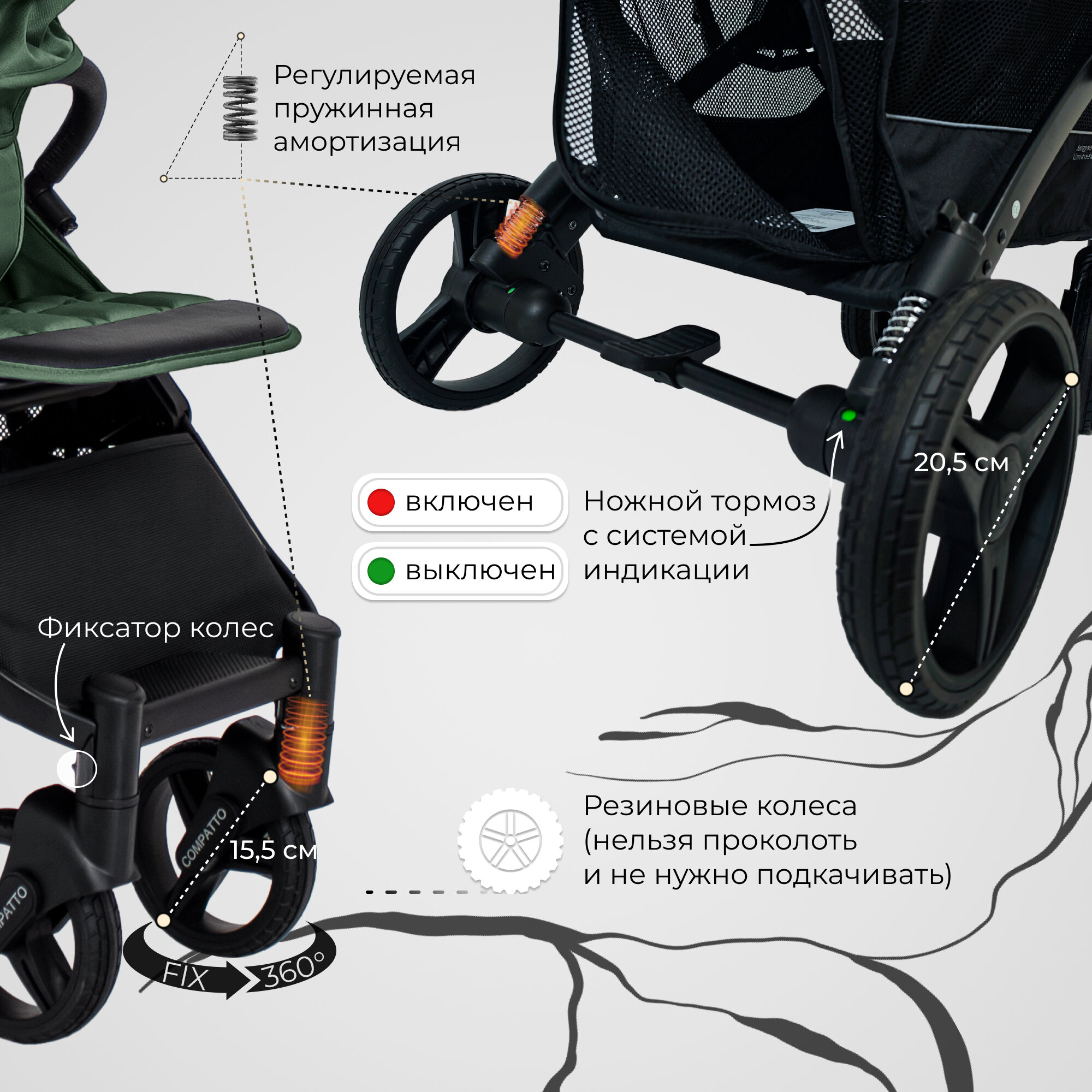 | Колеса | 4 шт., резиновые, 13-16 см |