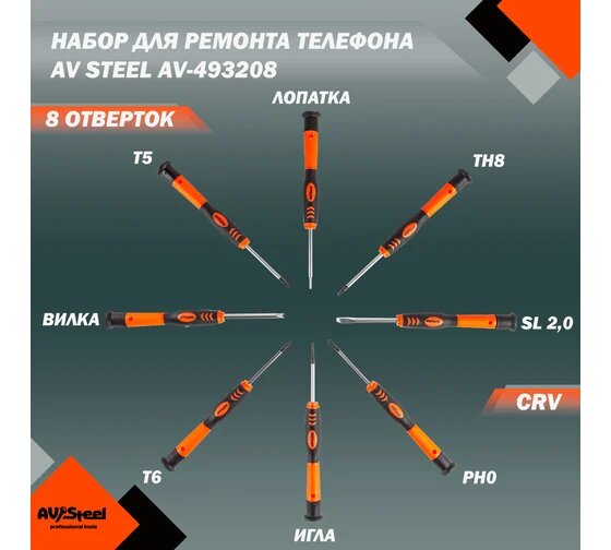 AV Steel Набор отверток для ремонта телефона 8 предметов AV-493208