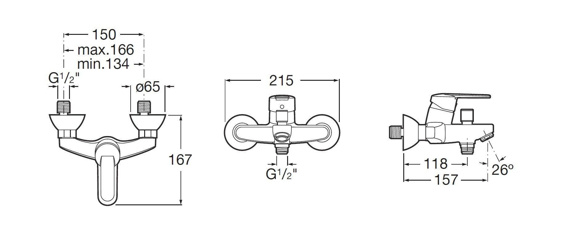 Настенный смеситель Roca Victoria, арт. 5A0225C0M, неповоротный излив, с выходом на душ (без лейки)