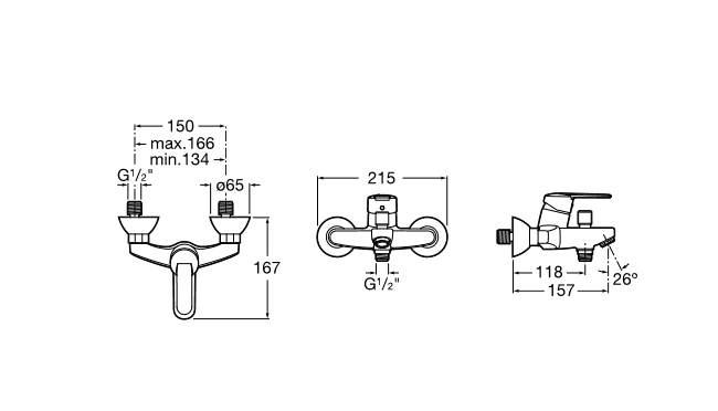 Victoria, настенный смеситель, неповоротный излив, с выходом на душ (без лейки), арт. 5A0225C0M, Roca