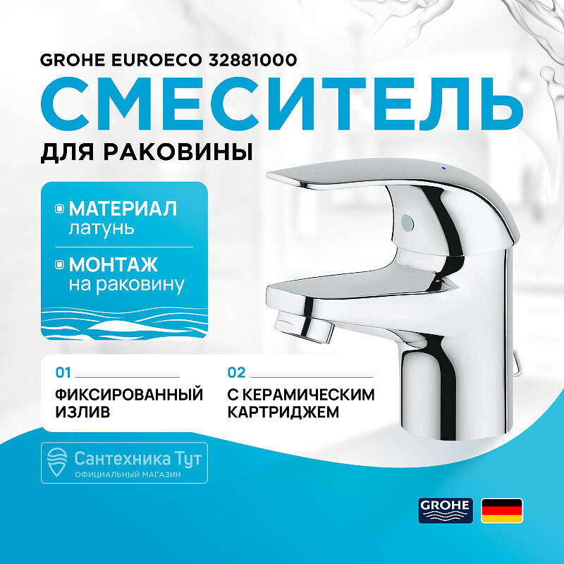 Смеситель для раковины, GROHE Euroeco, хром (32881000)