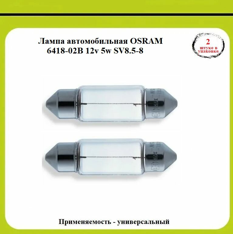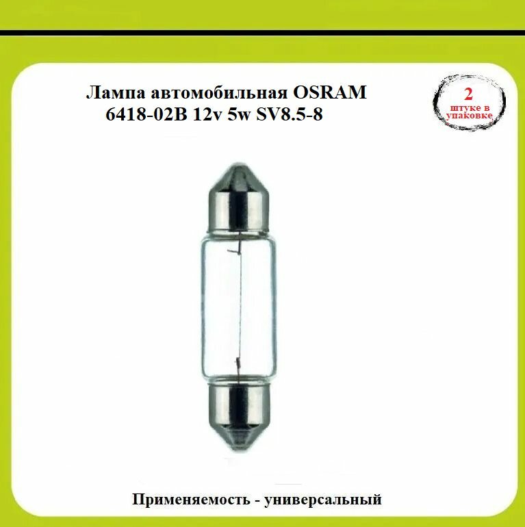 Автолампа накаливания OSRAM 6418 02B SV8 5 8