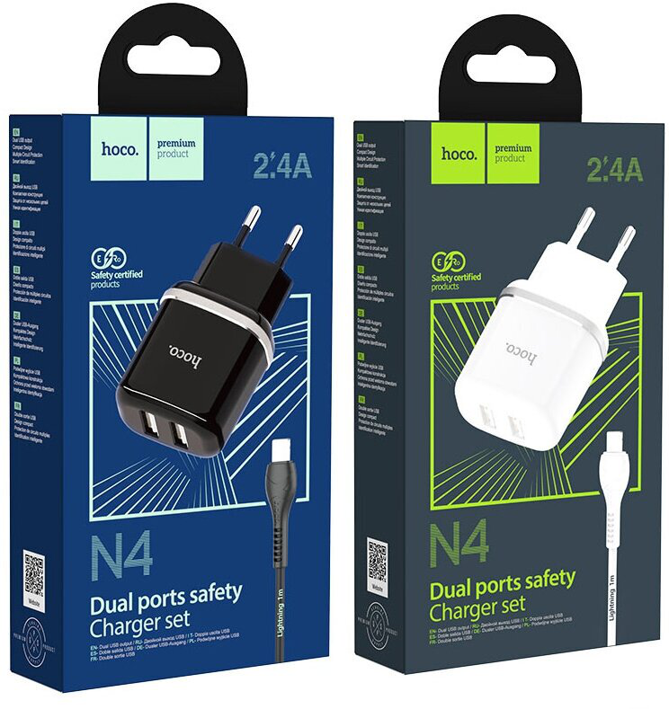 HOCO N4 Aspiring dual port charger set(for Lightning)(EU) black