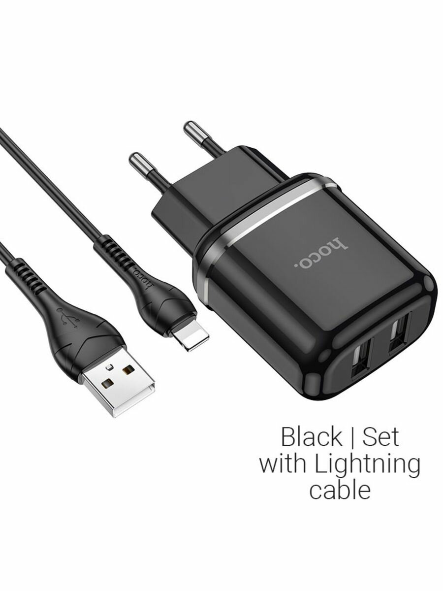 Сетевое зарядное устройство HOCO N4 Aspiring 2xUSB с Кабелем USB - Lightning, 2.4A, 10.8W, черный